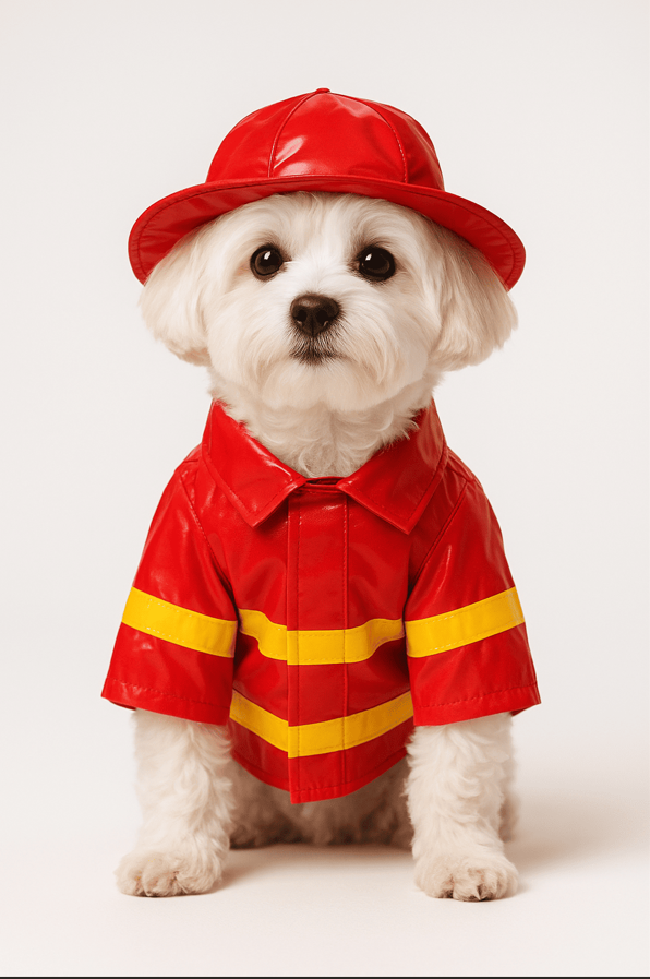 Disfraz de bombero para perros cómodo y divertido. Perfecto para Halloween o fotos.